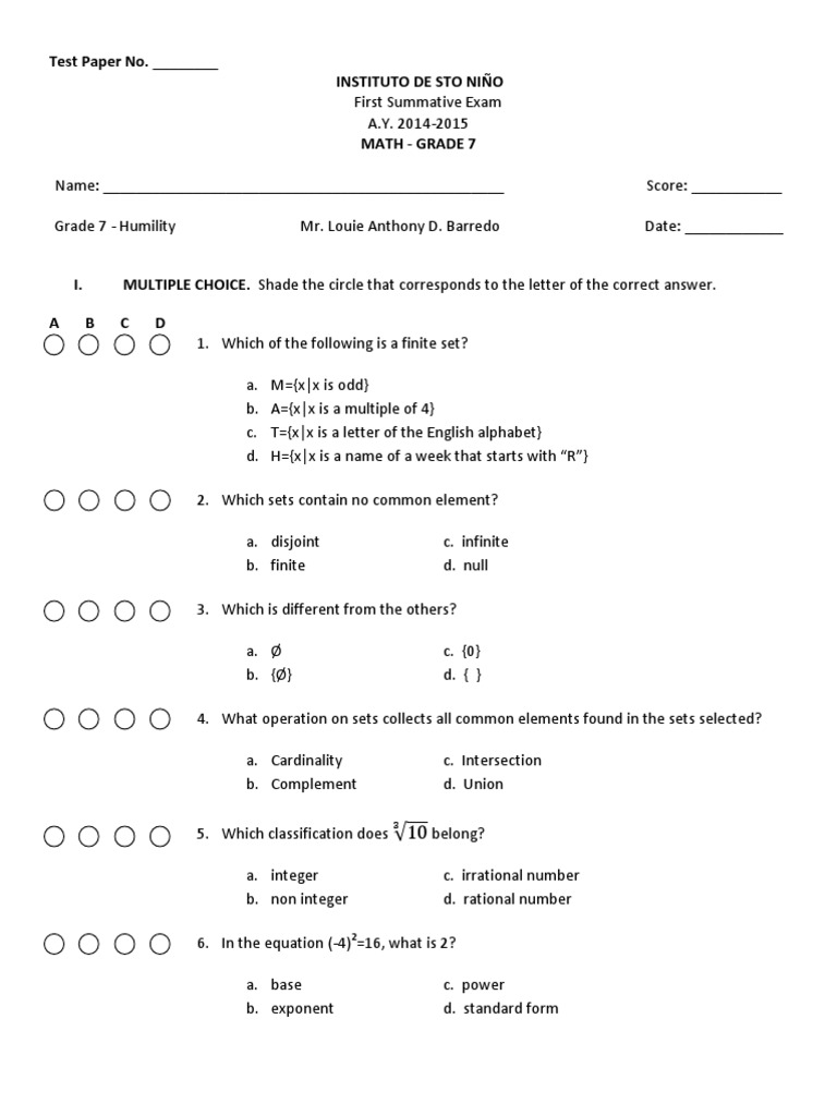 Math for Grade 7 | Math Practice, Tests, Worksheets ... Grade 7 math practice, questions, tests, teacher assignments, teacher worksheets, printable worksheets, and other activities for South Africa School Math, Olympiad, SAT Subject Test: Math Level 1, and SASMO.